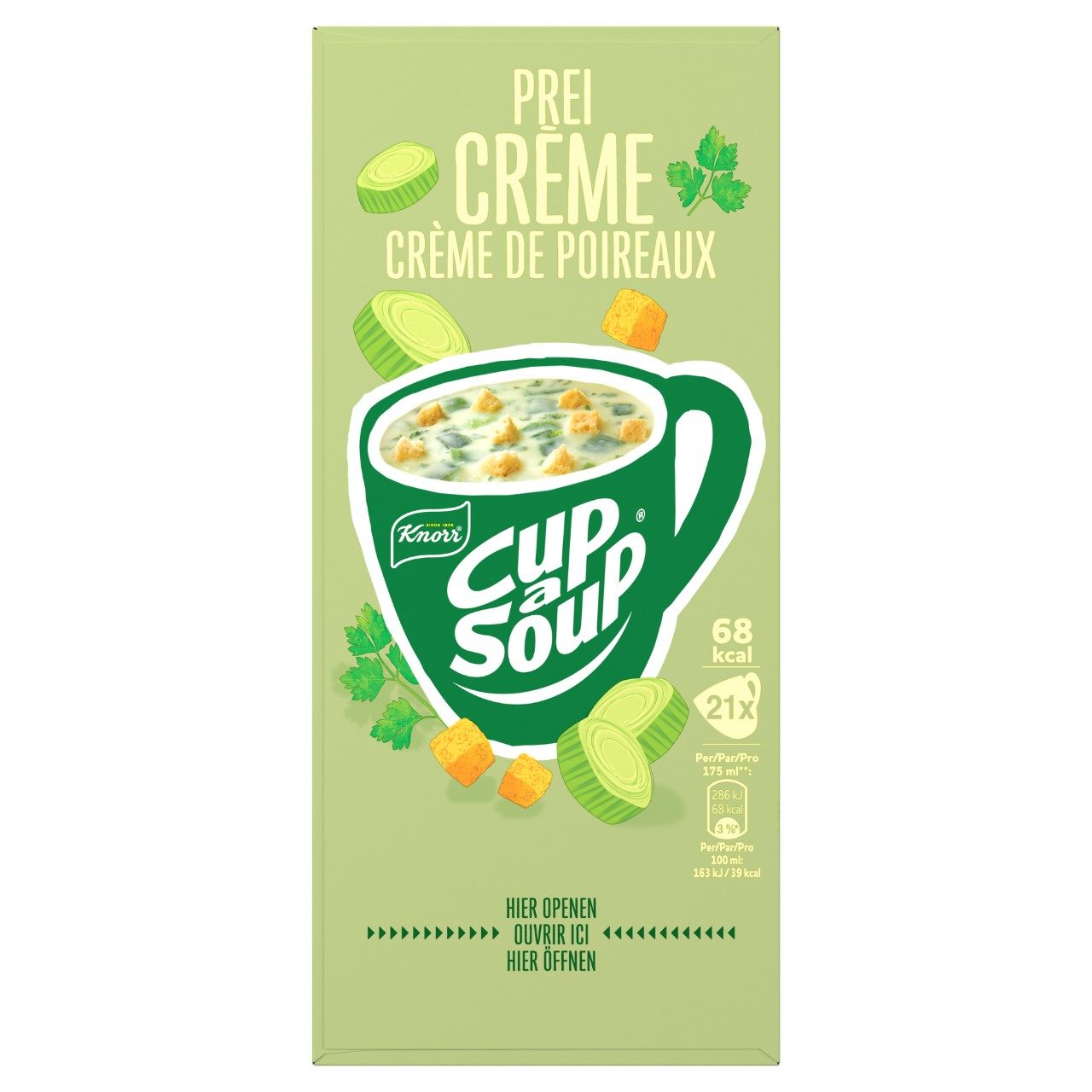 Cup a Soup Prei Crème Soep 17 g – Groot Pak 21 Zakjes